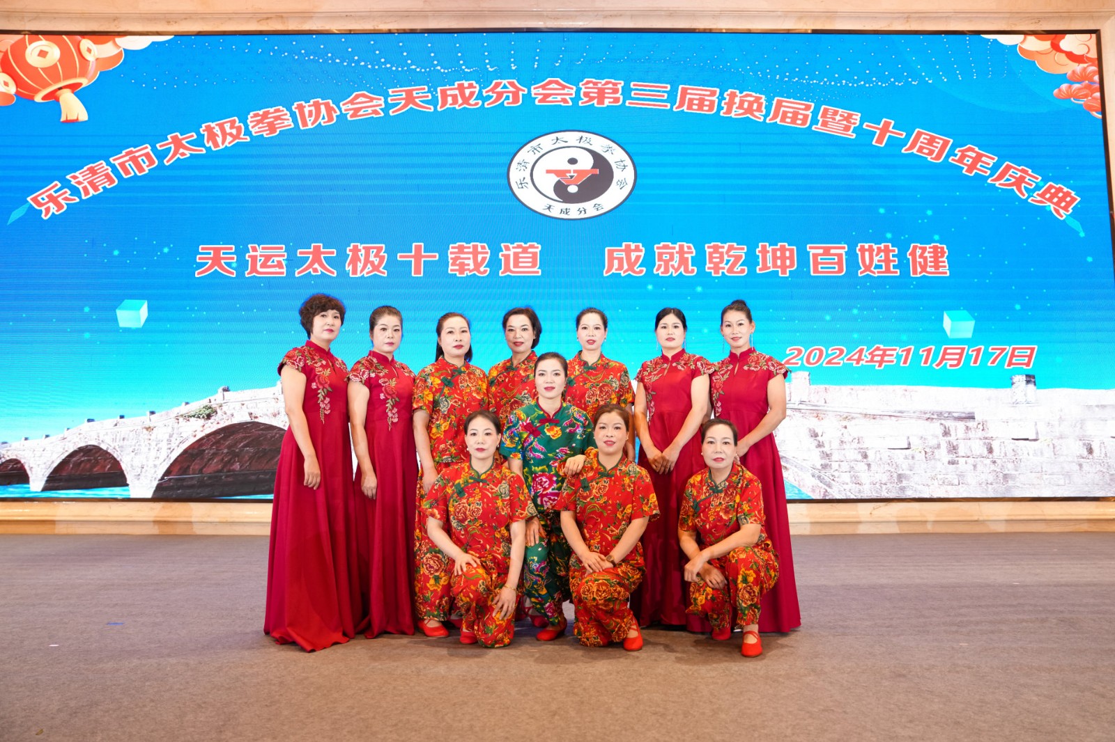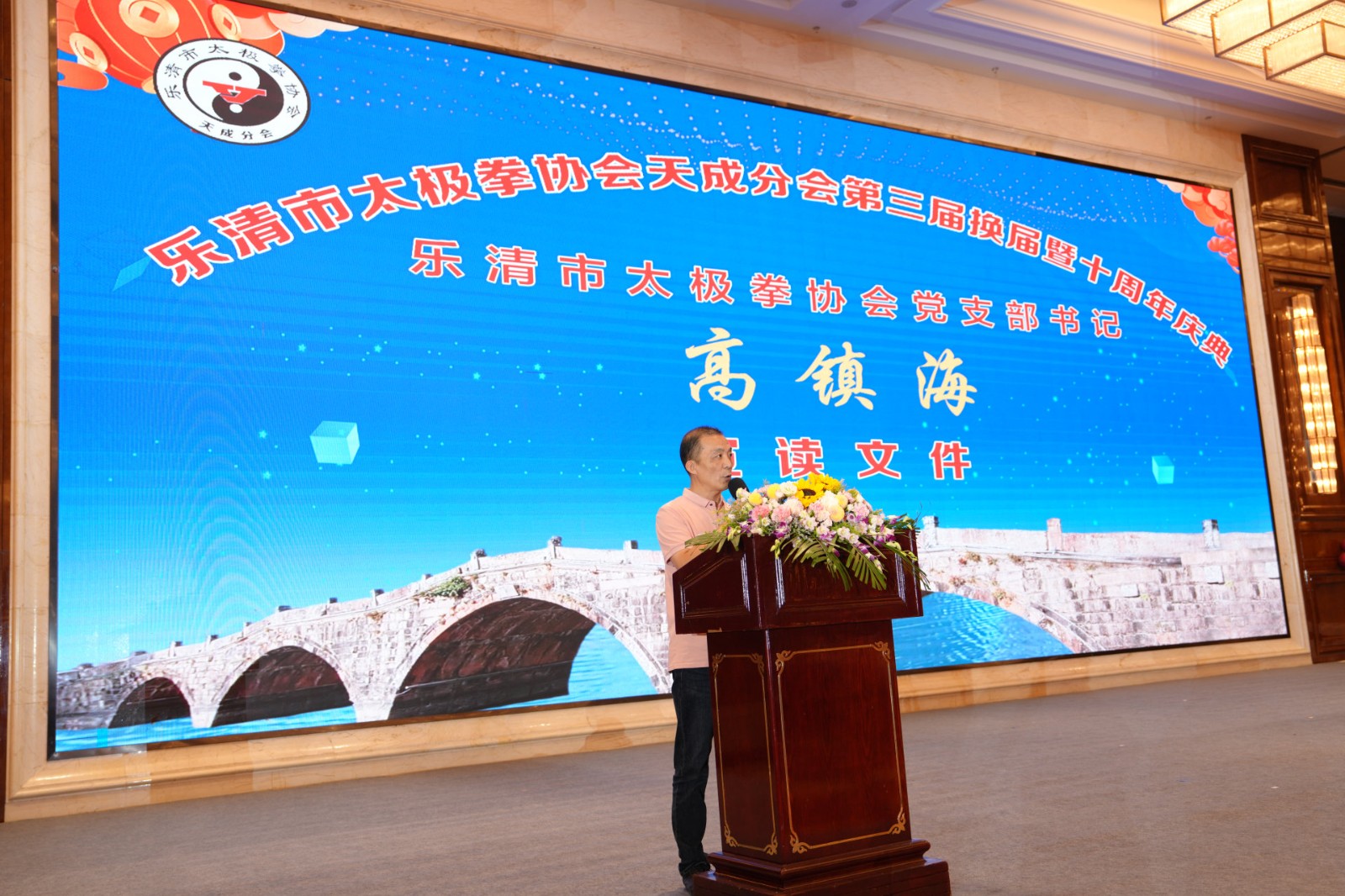 2024年11月17日上午,乐清市太极拳协会天成分会在温州三榆开元名都大酒店举办了第三届换届暨十周年庆典活动,由市协会首席高级顾问张龙先生题词“天运太极十载道 成就乾坤百姓健”为主题的一场盛典,同时也展示了天成街道历史文化千年古桥“万桥”,本次活动参加人员有乐清市太极拳协会会长黄可武、支部书记高镇海等市协领导、市体育事业发展中心副主任徐乐荣、天成街道人大工委主任陈兵、党工委副书记陈晓泉等领导、以及市人大代表、政协委员、各村党支部书记、天成商会代表、十多个分会代表、本分会全体会员及特邀嘉宾共500人参加了庆典活动。