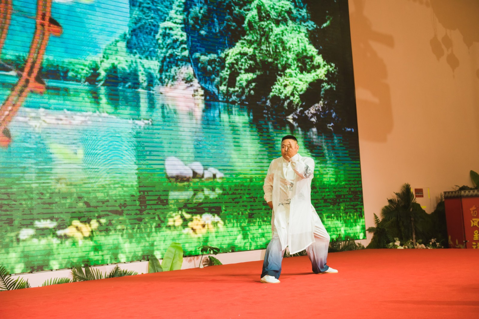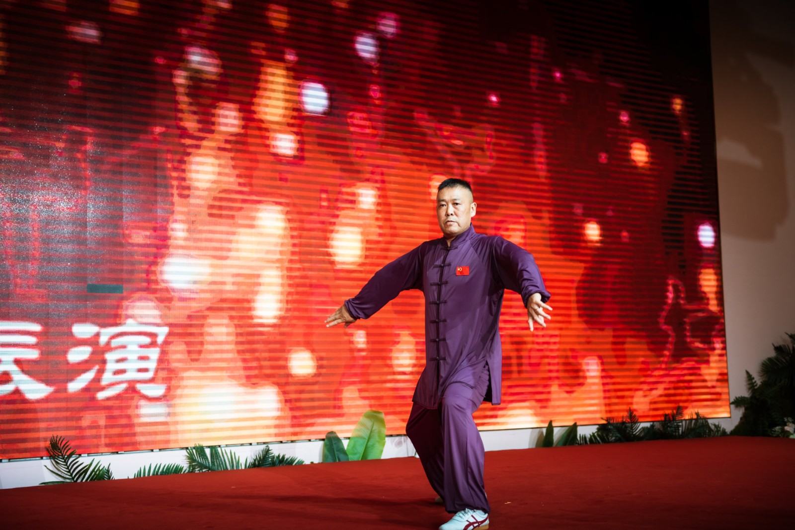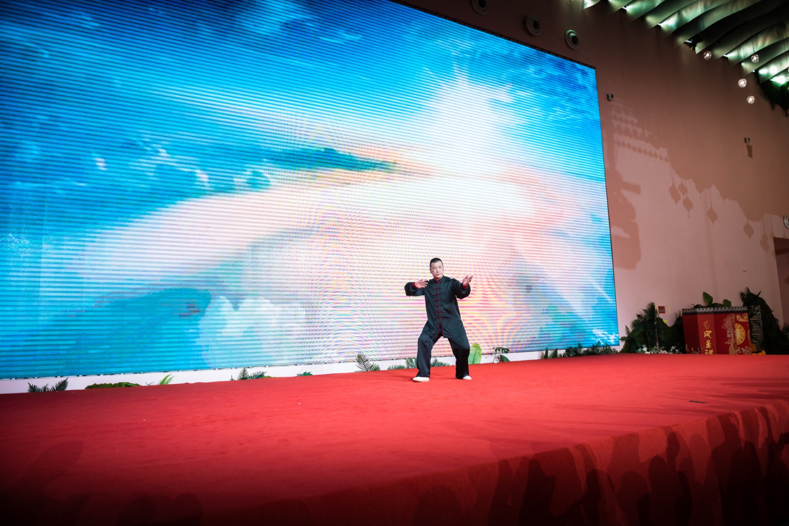 当天晚上在金鼎大酒店举行晚宴及武术节目展演,来自各个代表队的十九个节目相继亮相,太极拳、太极剑、太极推手、太极扇、太极伞、武当朴刀、螳螂拳等各类武术形式精彩纷呈,赢得现场观众的阵阵掌声。节目中间还穿插进行了颁奖仪式,团队奖、形象大使奖、贡献奖、传播大使奖等奖项获奖者纷纷上台领奖。