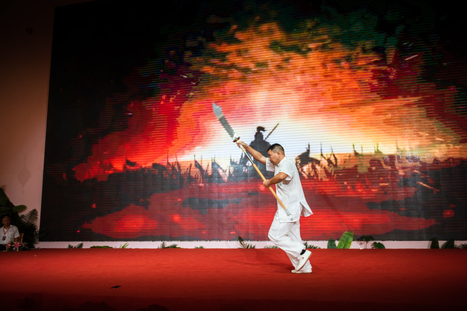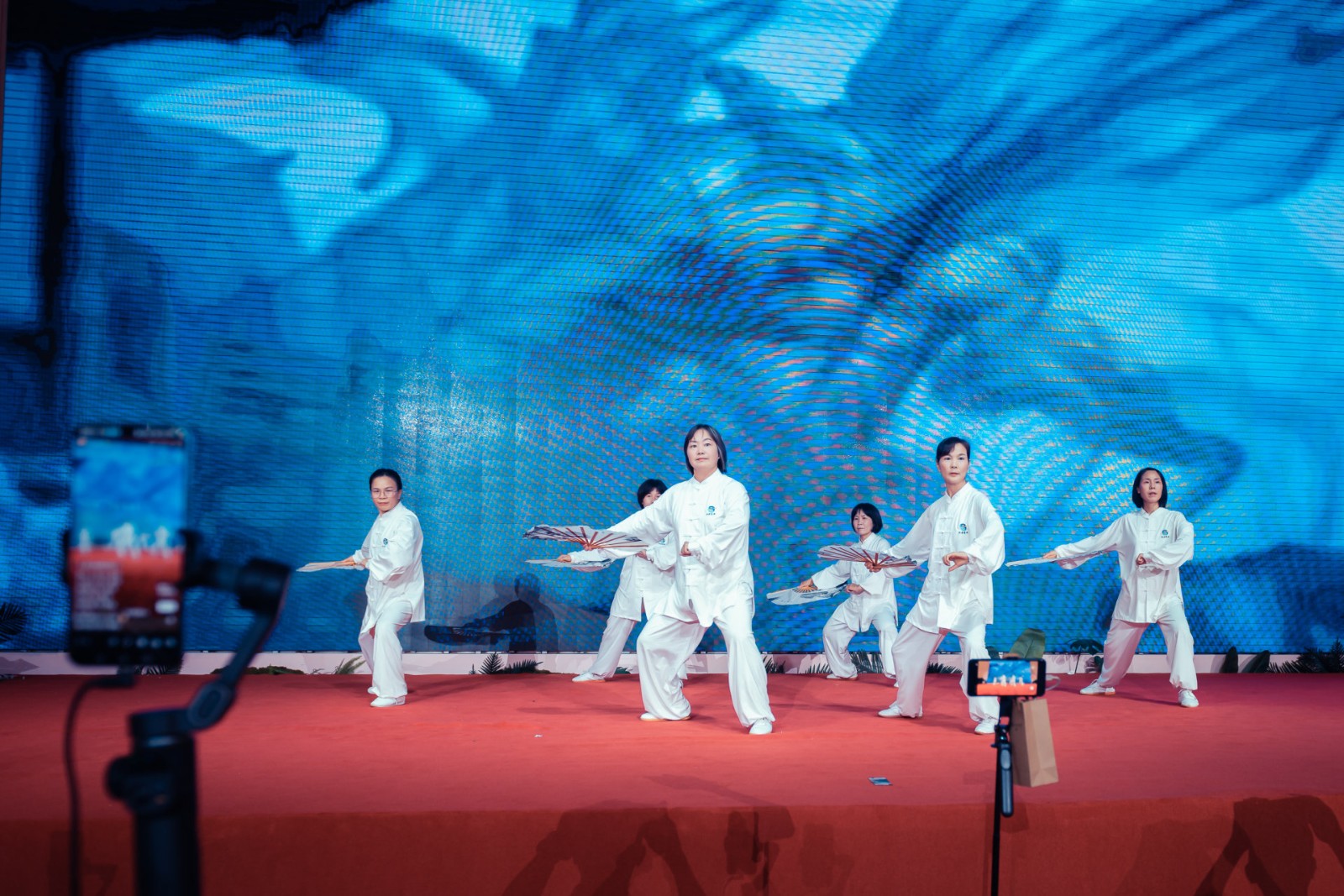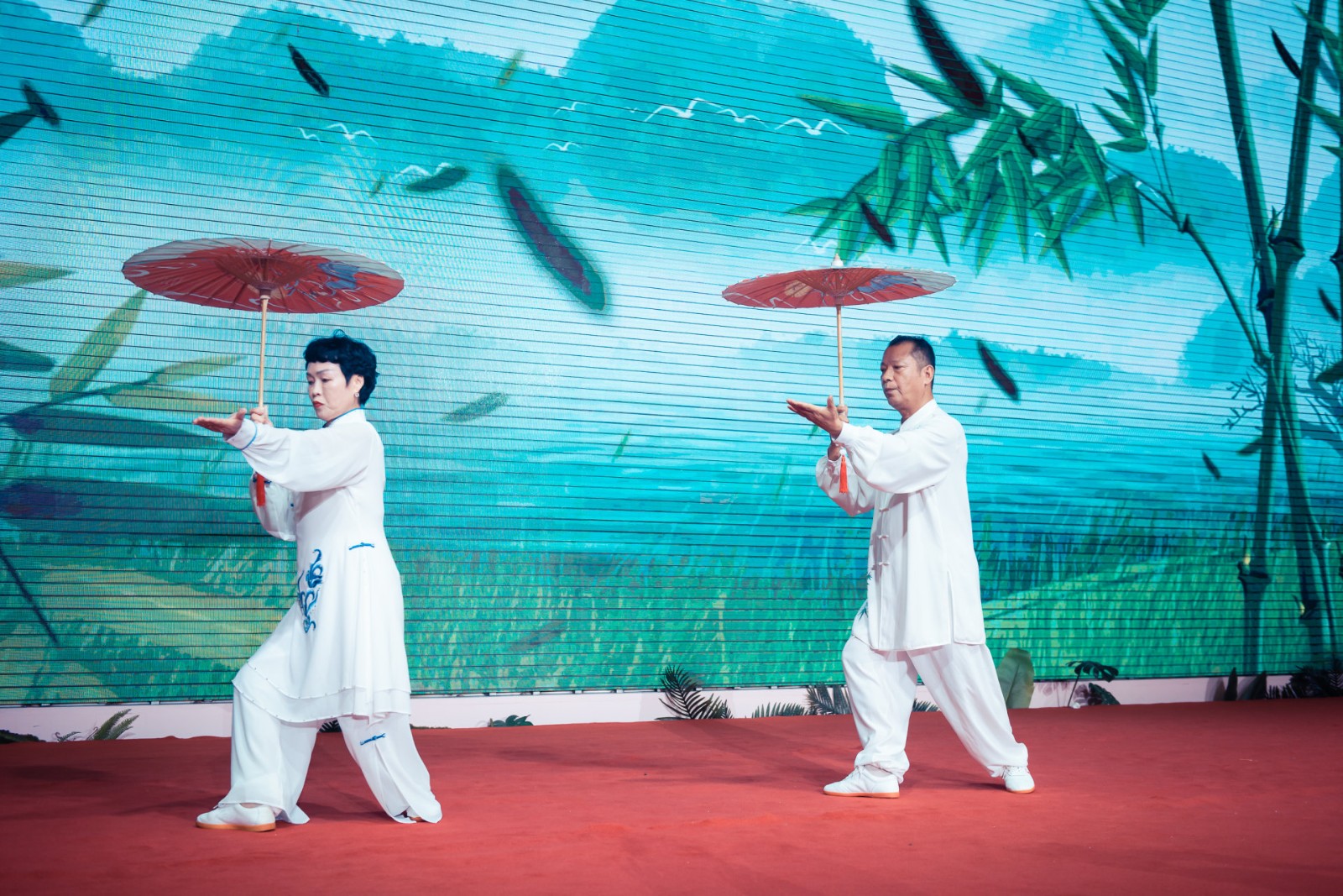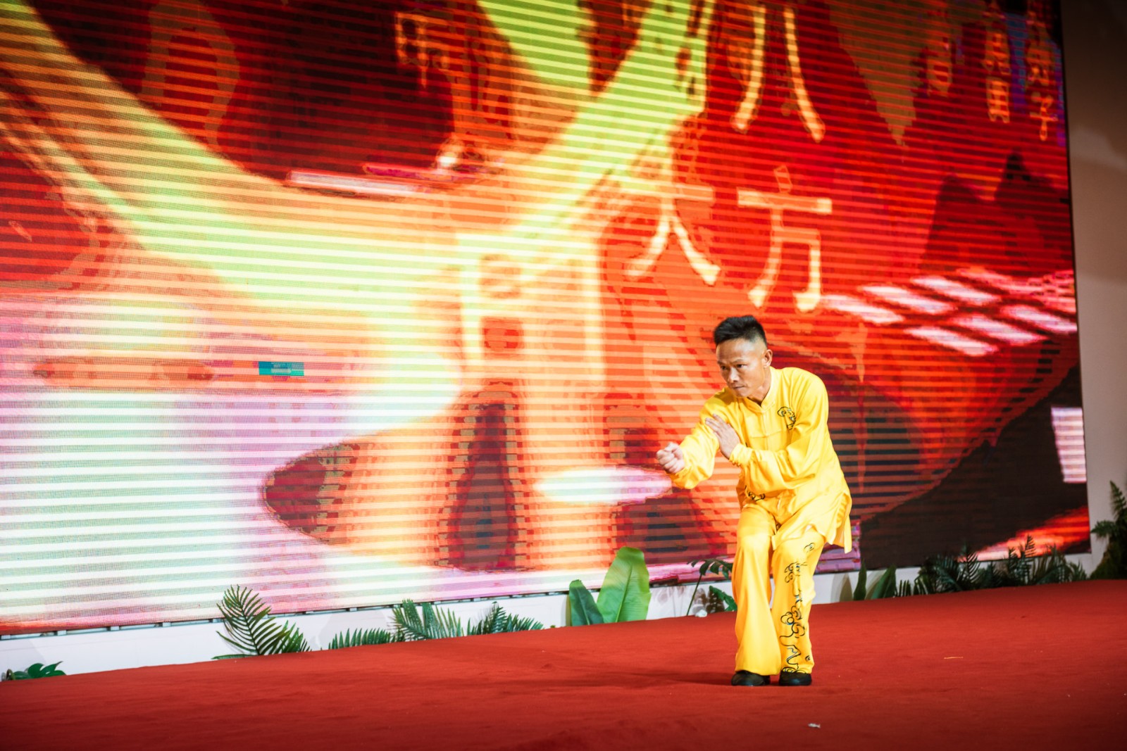 当天晚上在金鼎大酒店举行晚宴及武术节目展演,来自各个代表队的十九个节目相继亮相,太极拳、太极剑、太极推手、太极扇、太极伞、武当朴刀、螳螂拳等各类武术形式精彩纷呈,赢得现场观众的阵阵掌声。节目中间还穿插进行了颁奖仪式,团队奖、形象大使奖、贡献奖、传播大使奖等奖项获奖者纷纷上台领奖。