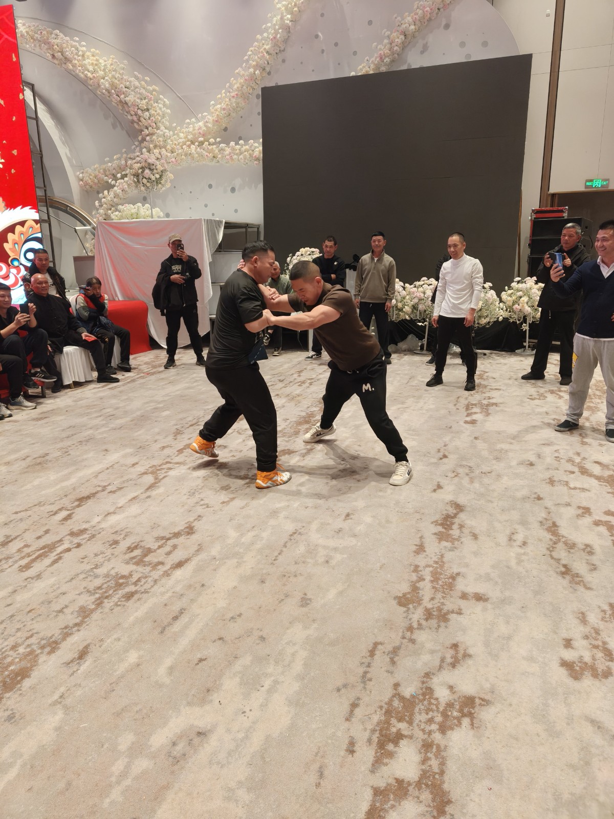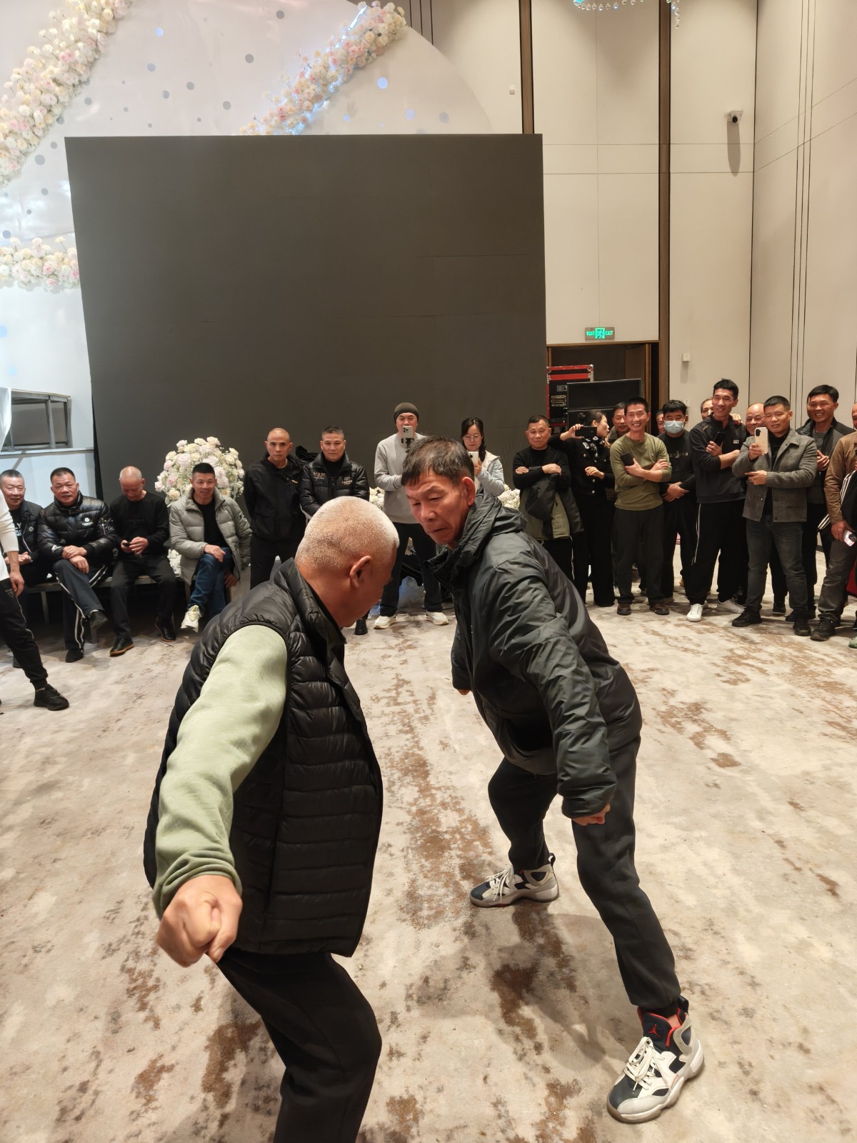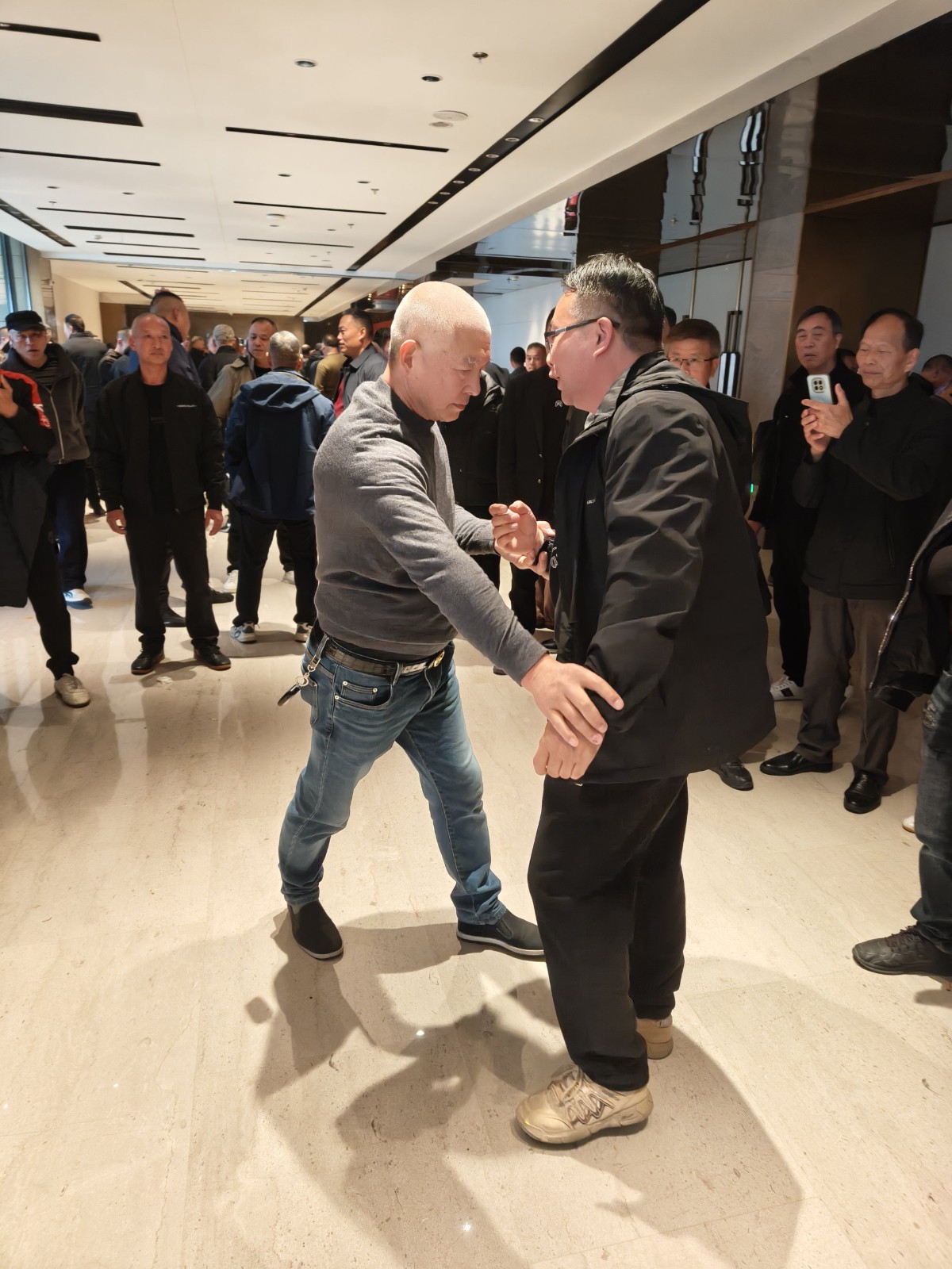 温州地区12个市县区28支太极推手俱乐部,与来自上海,广东,福州,安徽等地拳友共600多人在平阳县万泉度假酒店欢聚一堂,推手交流切磋,掌声与笑声回响在宴会厅内外,中午1点到4点分竞技交流和听劲摸劲两个场地进行推手自由交流活动,大家取长补短,互相提高,非常的开心快乐。