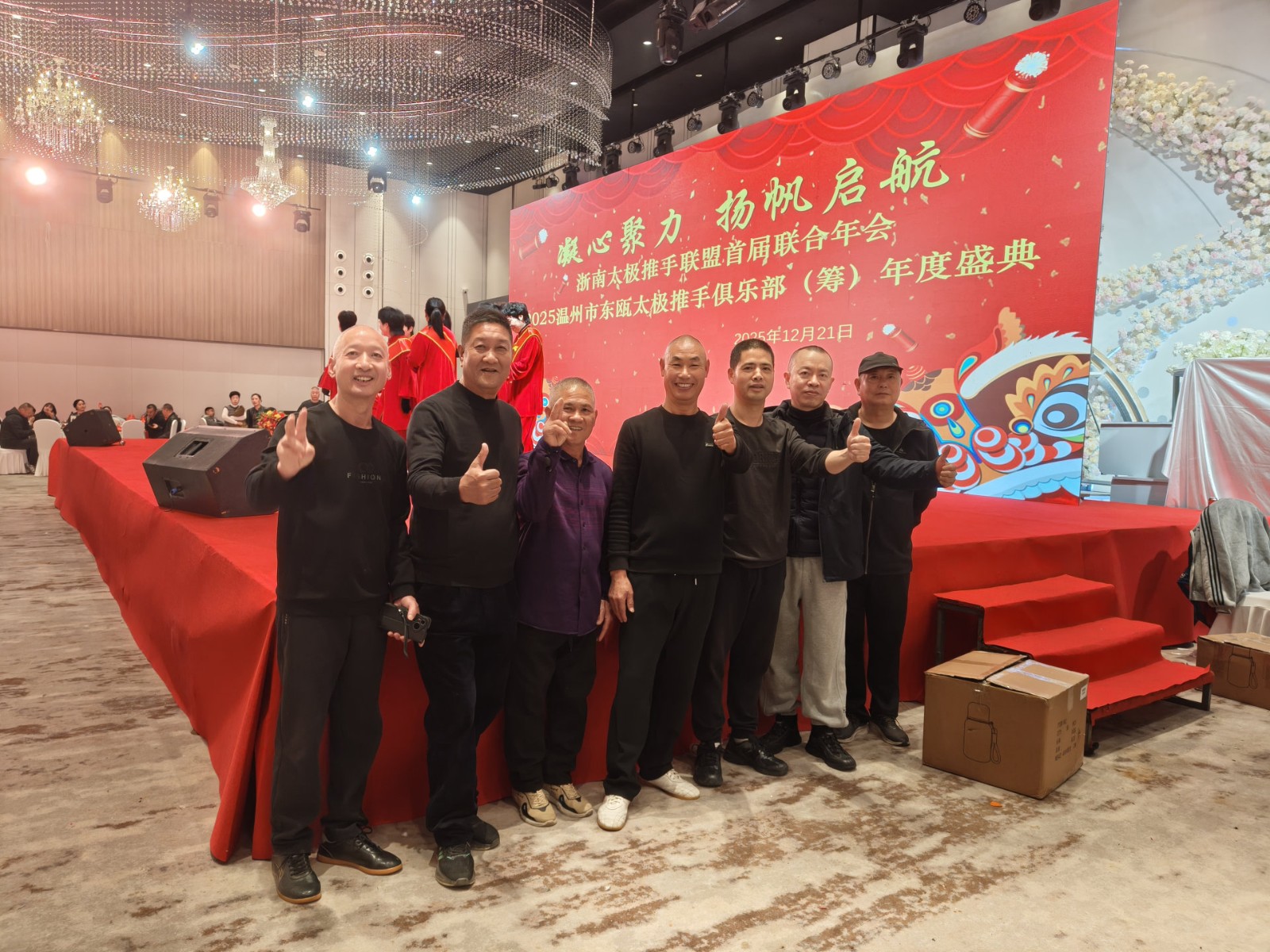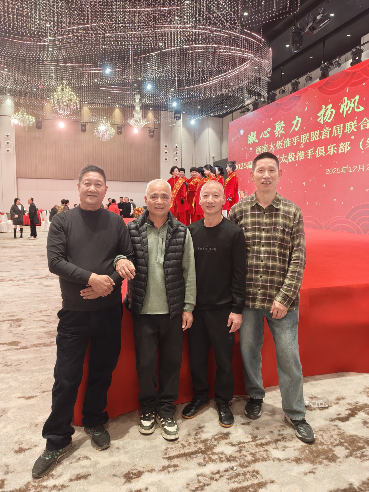 2025年12月21日,乐清市太极拳协会城南推手俱乐部叶永晓、卢茂松、沈宣林、胡晓青、叶连挺、林建龙、南贤豹、金晓微、赵方芳、虞丽央、王鸿辉、王源开、郑巨义、张朋志、陈汉定、黄延龄、金信波、赵永乐、银希等成员受邀参加了“凝心聚力,扬帆起航,承韵-启新”2025年温州市东瓯太极推手俱乐部(筹)年度盛典暨浙南民间太极推手联盟首届联合年会。