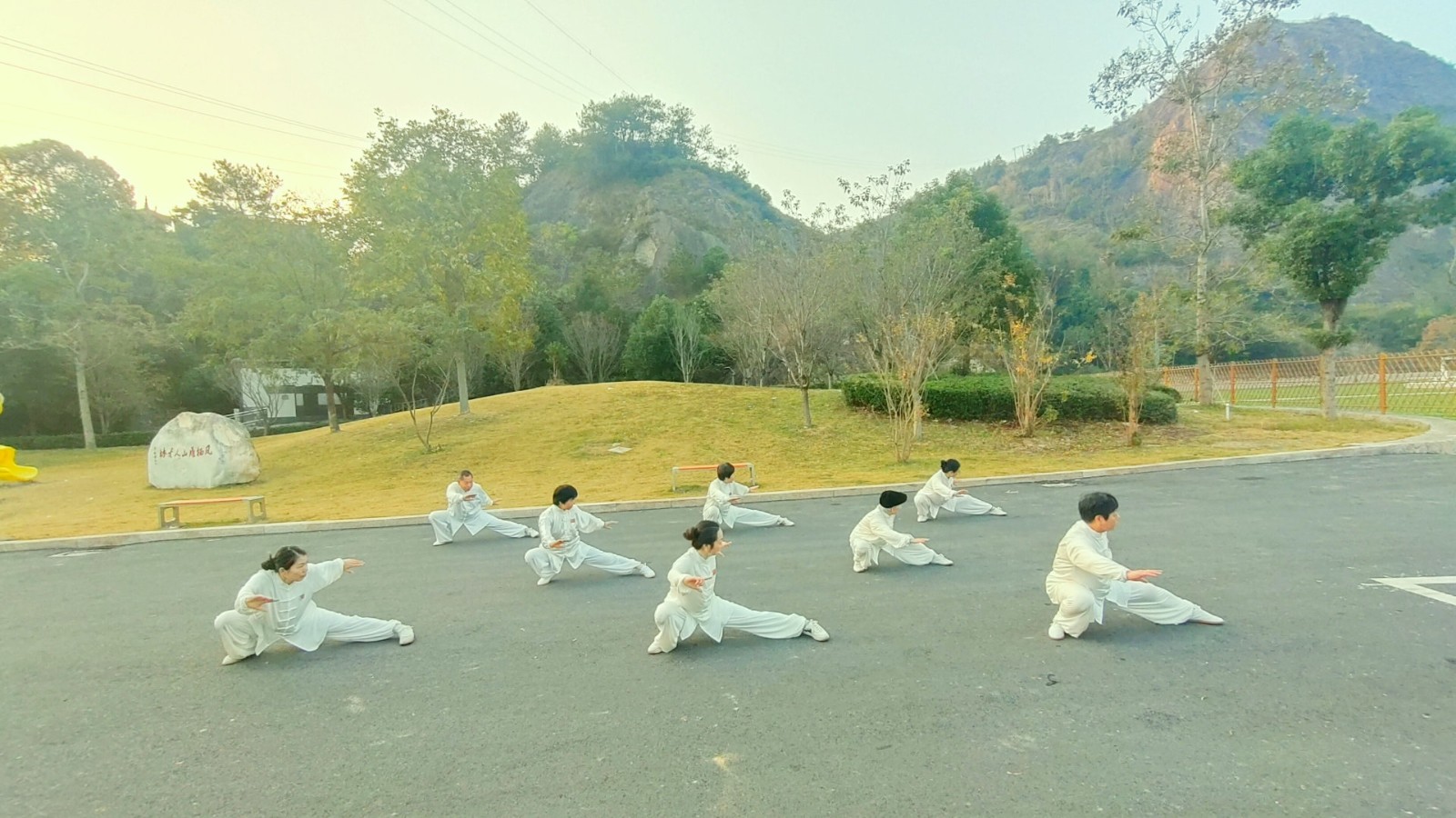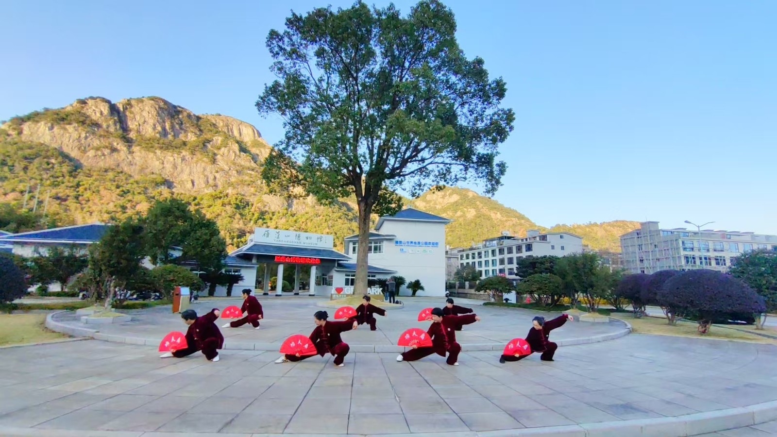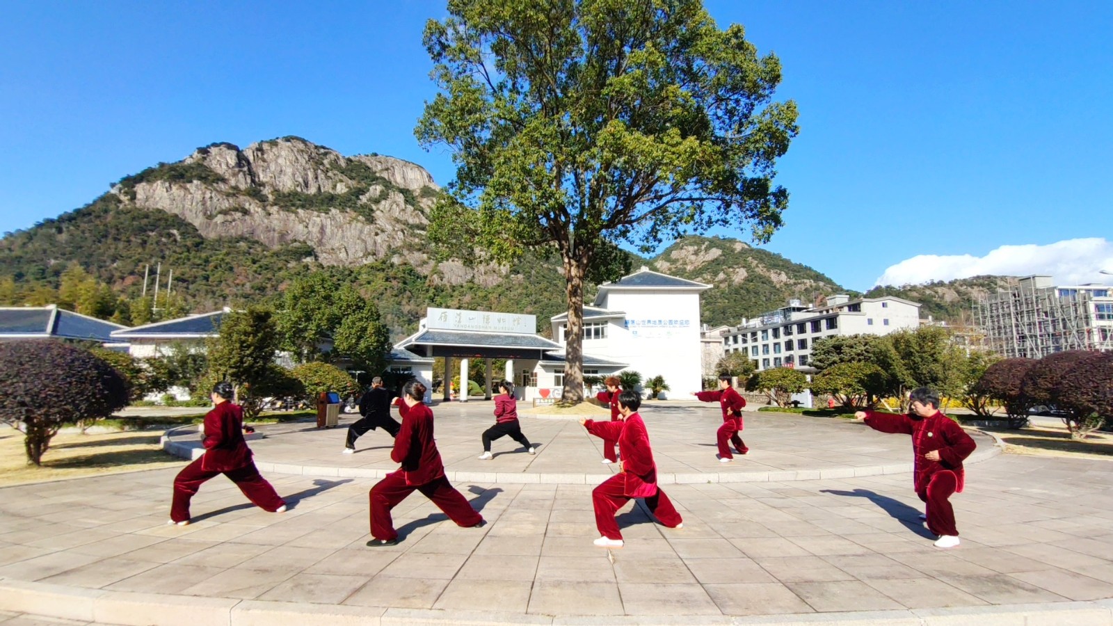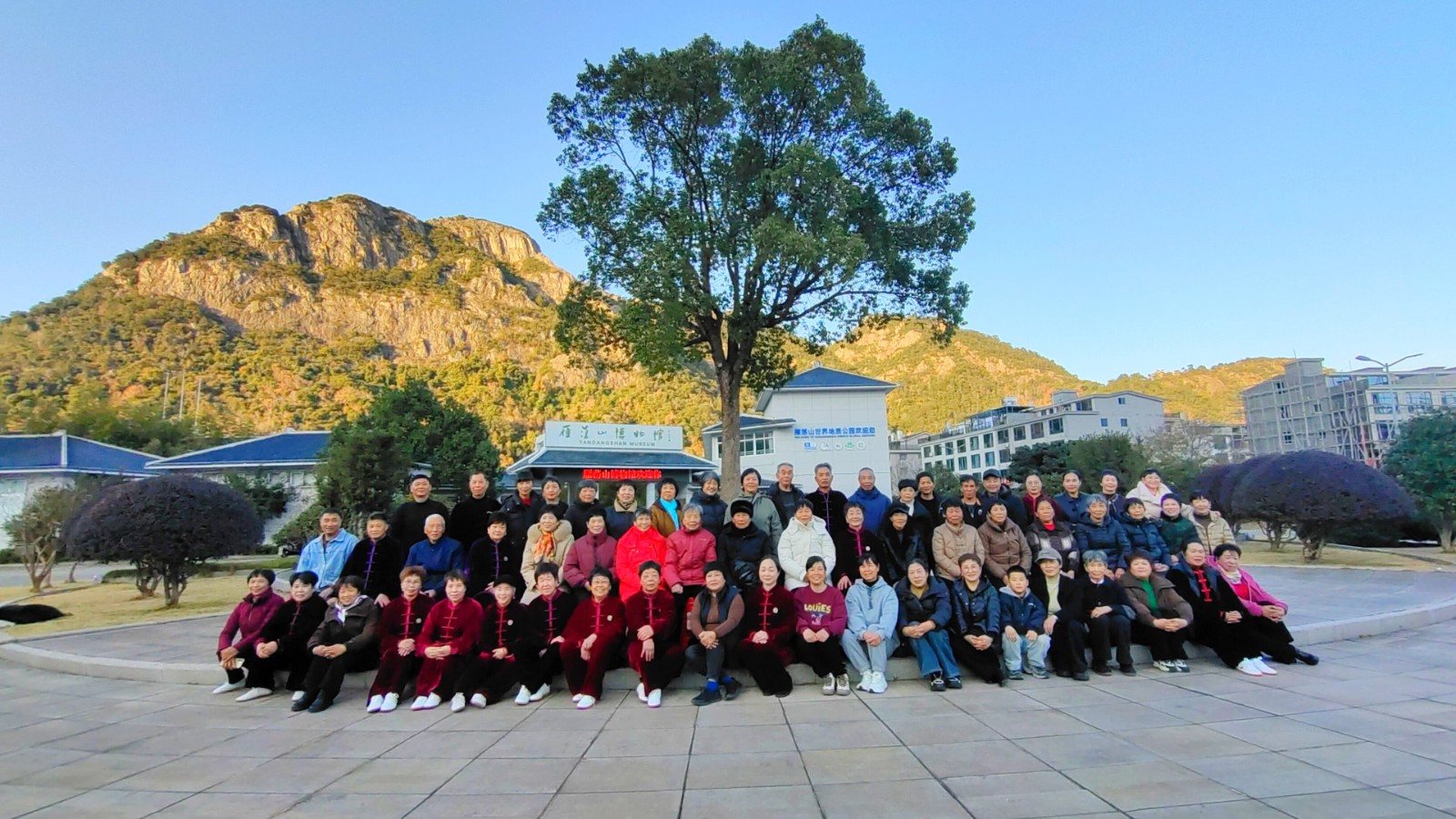 2025年12月27日,虽然气温很低,但阳光明媚,晴空万里。我们雁荡太极拳分会2025年会在雁荡博物馆外隆重举行,80多名会员参加了本次活动。这次活动放在环境优美,空气清新的户外进行,大家的心情都格外激动、兴奋,早早地来到了活动场地,做着各种各样的准备活动。