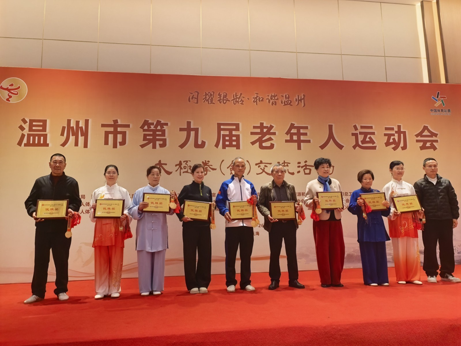 2026年3月25日,温州市第十九届老年人运动会太极拳(剑)交流活动在温州市瓯越大酒店隆重举行。乐清市太极拳协会组织的乐清市老年人体育协会代表队由蒋爱芬任领队,叶建汉任教练,南凤眉、赵忠义、赵彩蕊、叶金兰、张红燕、张小平、张小妹、陈美琴等运动员参加了本次比赛并取得集体项目42式太极拳优胜奖,40式太极拳优秀奖,个人项目陈美琴2个金牌,张小妹1金1铜,赵忠义1银,赵彩蕊第五名,叶金兰第六名,张红燕第六名,张小平第六名的优异成绩。