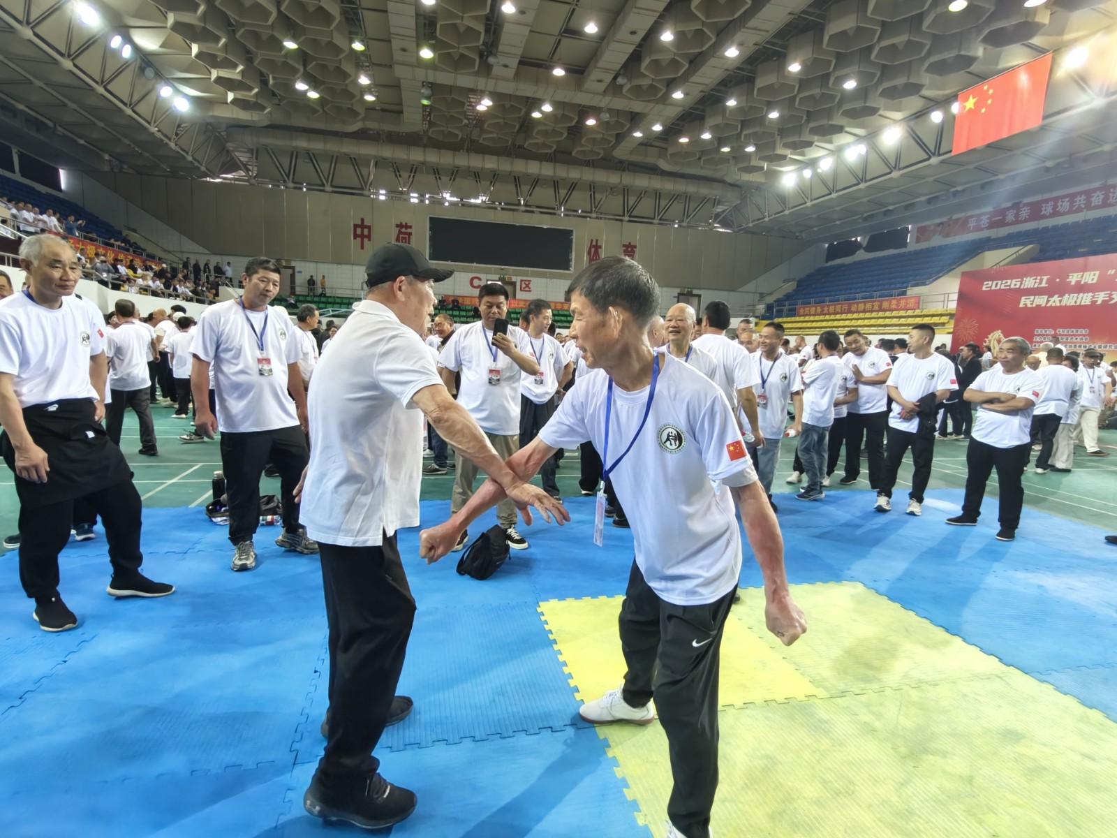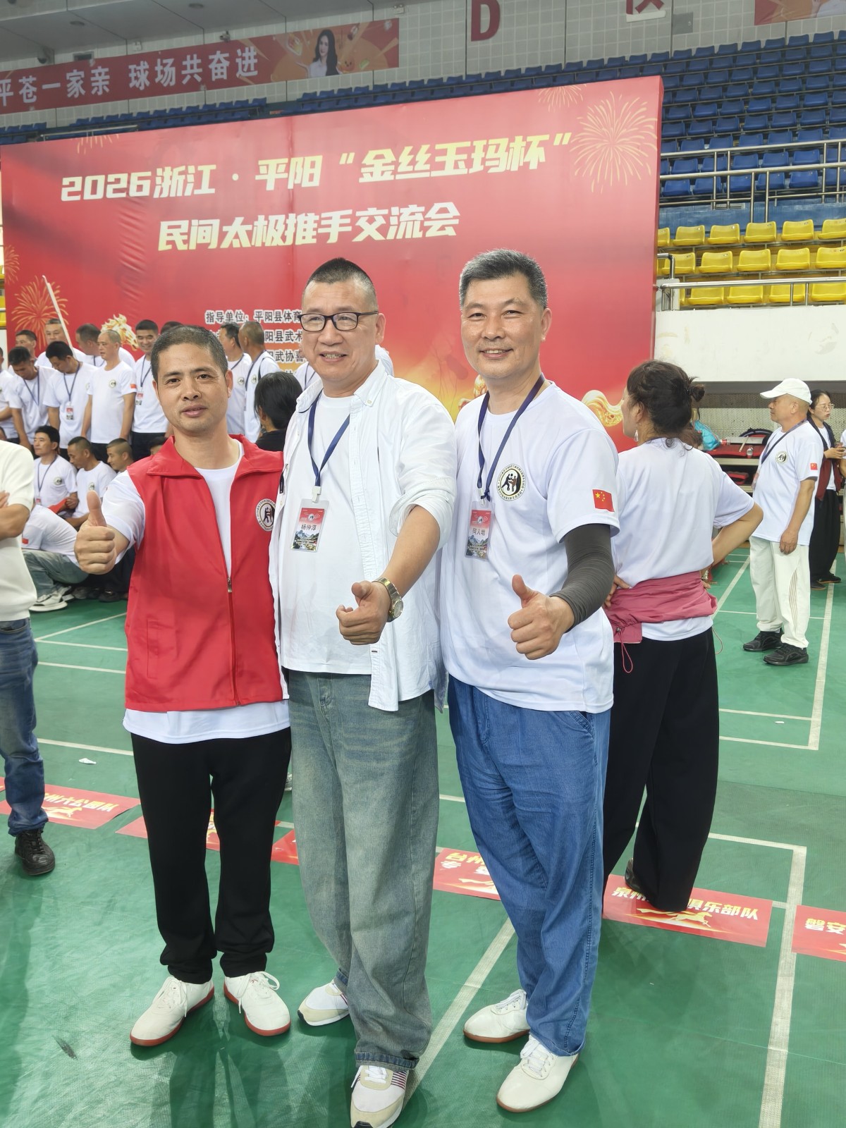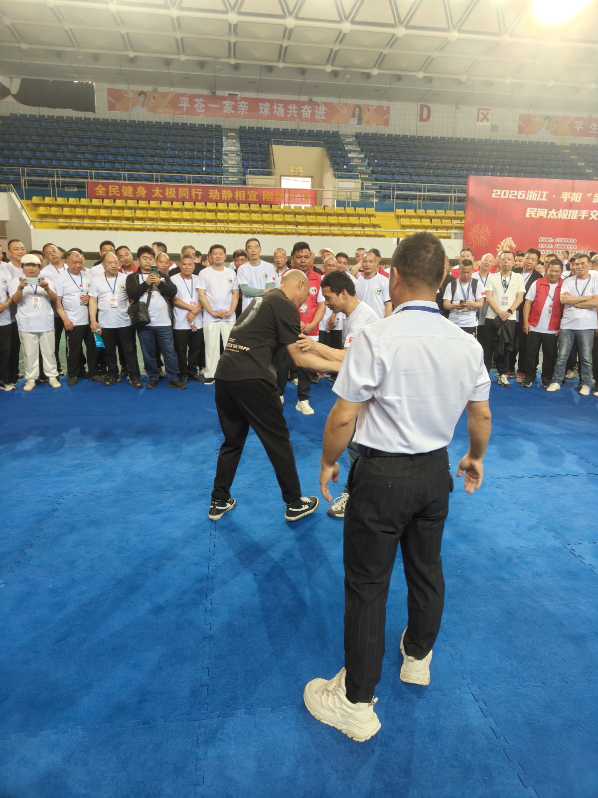 全国各地来自上海、广东、福州、安徽、江西、山东、深圳及浙江省温州各地拳友等共800多人在平阳县体育馆欢聚一堂,交流切磋太极推手技艺,大家取长补短,互相提高。