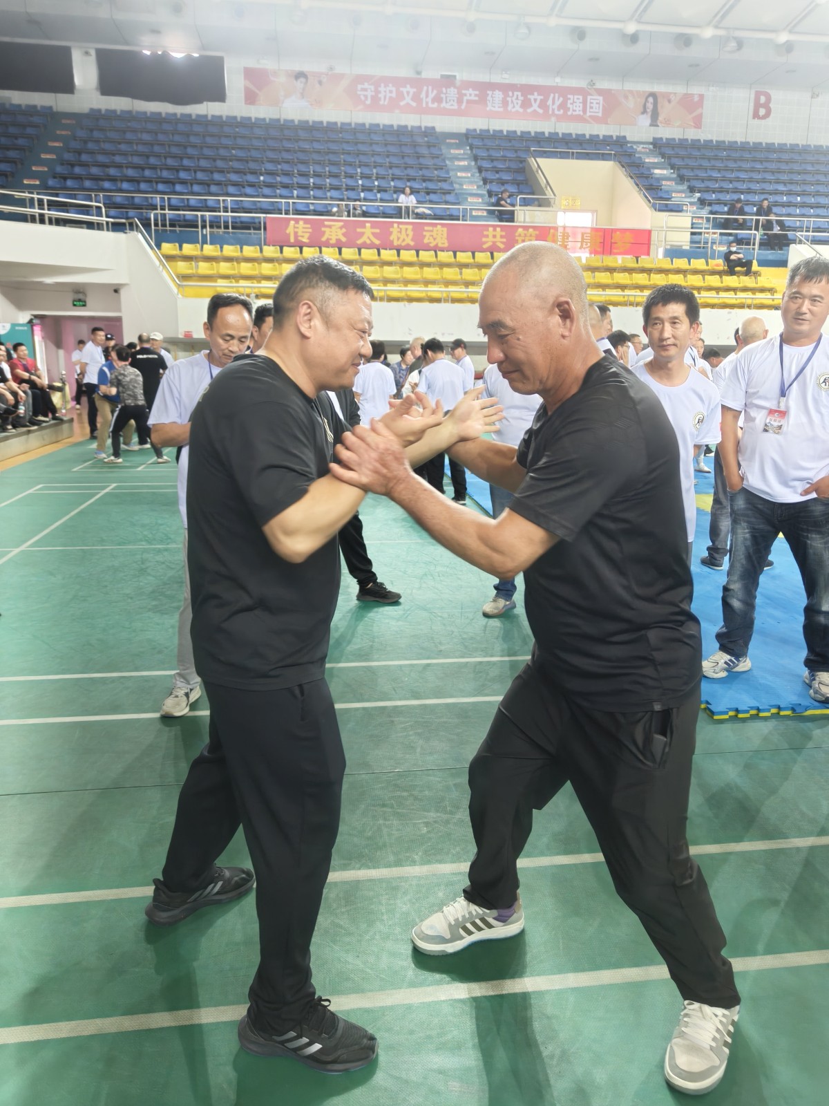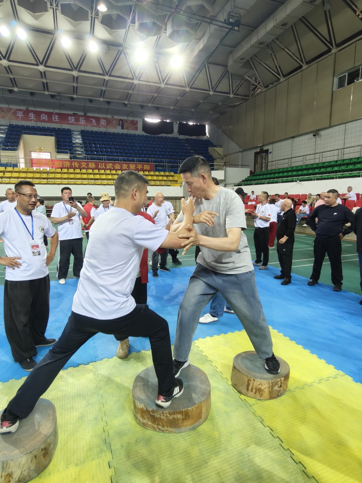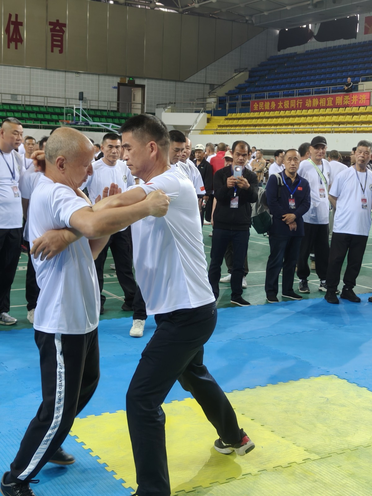 全国各地来自上海、广东、福州、安徽、江西、山东、深圳及浙江省温州各地拳友等共800多人在平阳县体育馆欢聚一堂,交流切磋太极推手技艺,大家取长补短,互相提高。