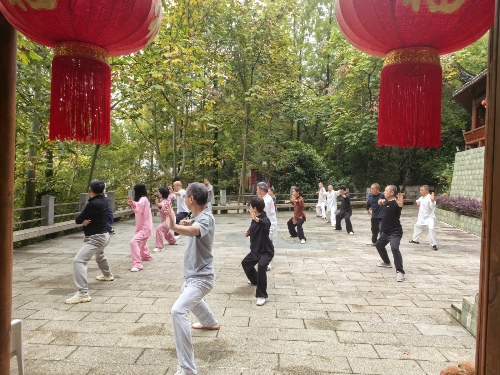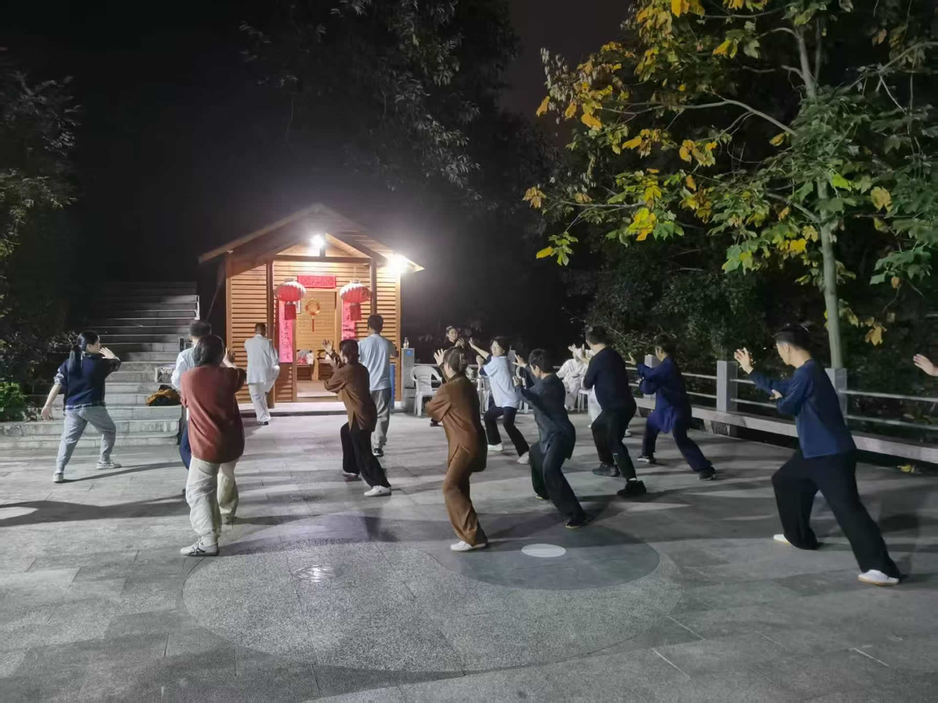 活动期间,每日晨光初露与暮色渐浓之时,三十余位太极爱好者便齐聚闻溪台,在王师壹道长的引领下潜心修习。道长教学严谨细致,讲解深入浅出,对每一招式都亲自示范、耐心纠正。学员们学习热情高涨,在动静开合间领略太极精髓,受益匪浅。