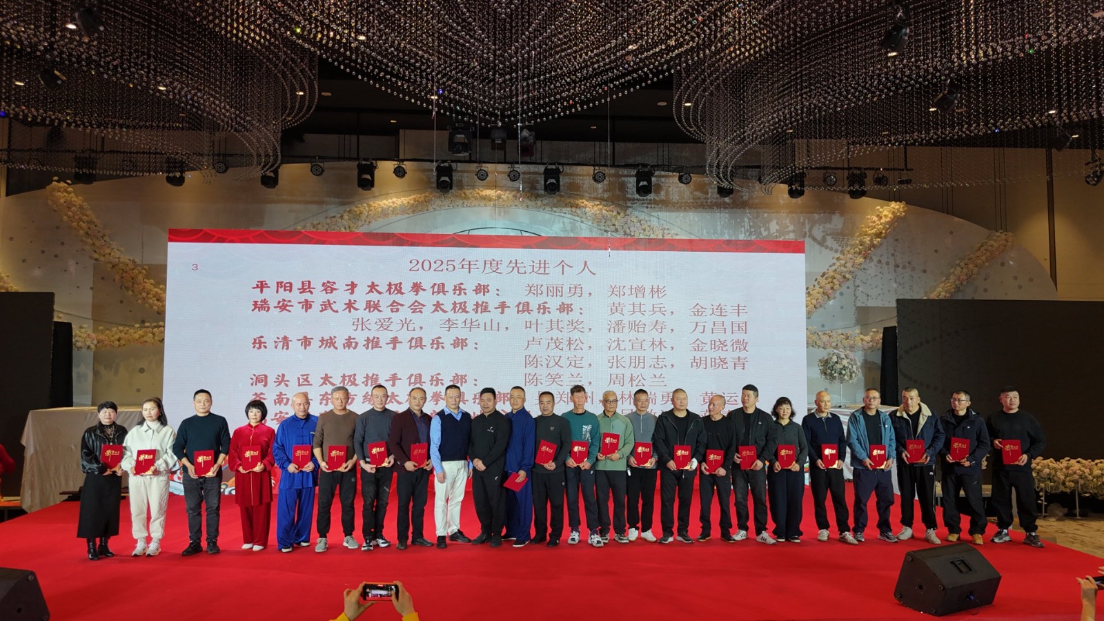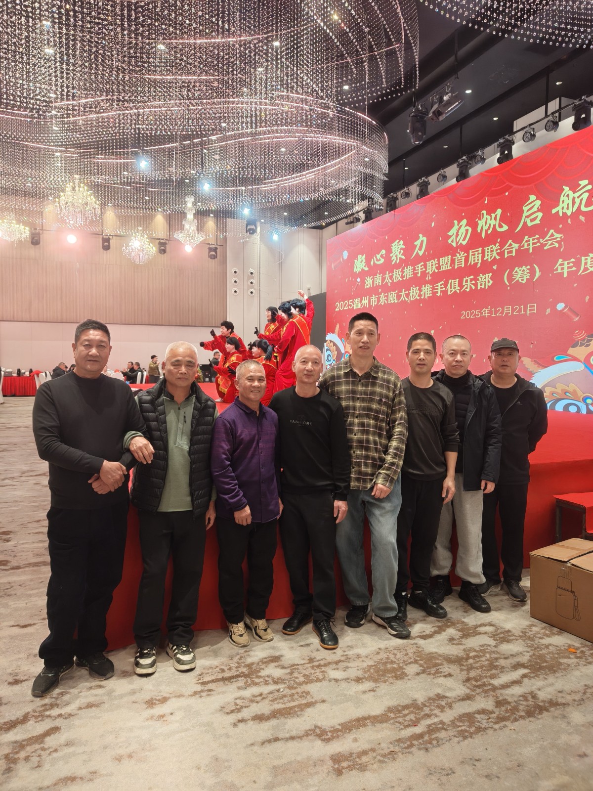 2025年12月21日,乐清市太极拳协会城南推手俱乐部叶永晓、卢茂松、沈宣林、胡晓青、叶连挺、林建龙、南贤豹、金晓微、赵方芳、虞丽央、王鸿辉、王源开、郑巨义、张朋志、陈汉定、黄延龄、金信波、赵永乐、银希等成员受邀参加了“凝心聚力,扬帆起航,承韵-启新”2025年温州市东瓯太极推手俱乐部(筹)年度盛典暨浙南民间太极推手联盟首届联合年会。