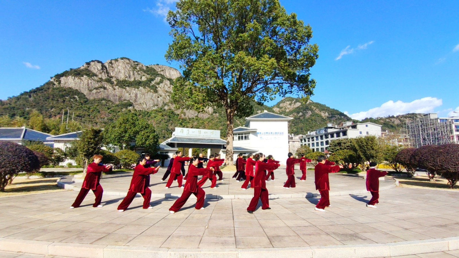 2025年12月27日,虽然气温很低,但阳光明媚,晴空万里。我们雁荡太极拳分会2025年会在雁荡博物馆外隆重举行,80多名会员参加了本次活动。这次活动放在环境优美,空气清新的户外进行,大家的心情都格外激动、兴奋,早早地来到了活动场地,做着各种各样的准备活动。