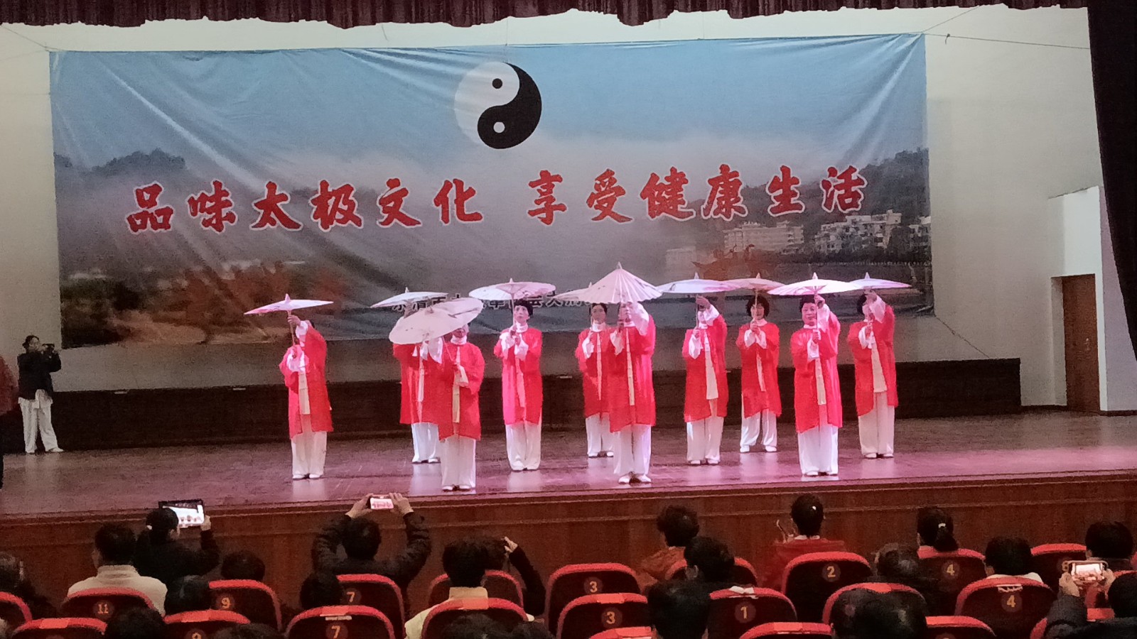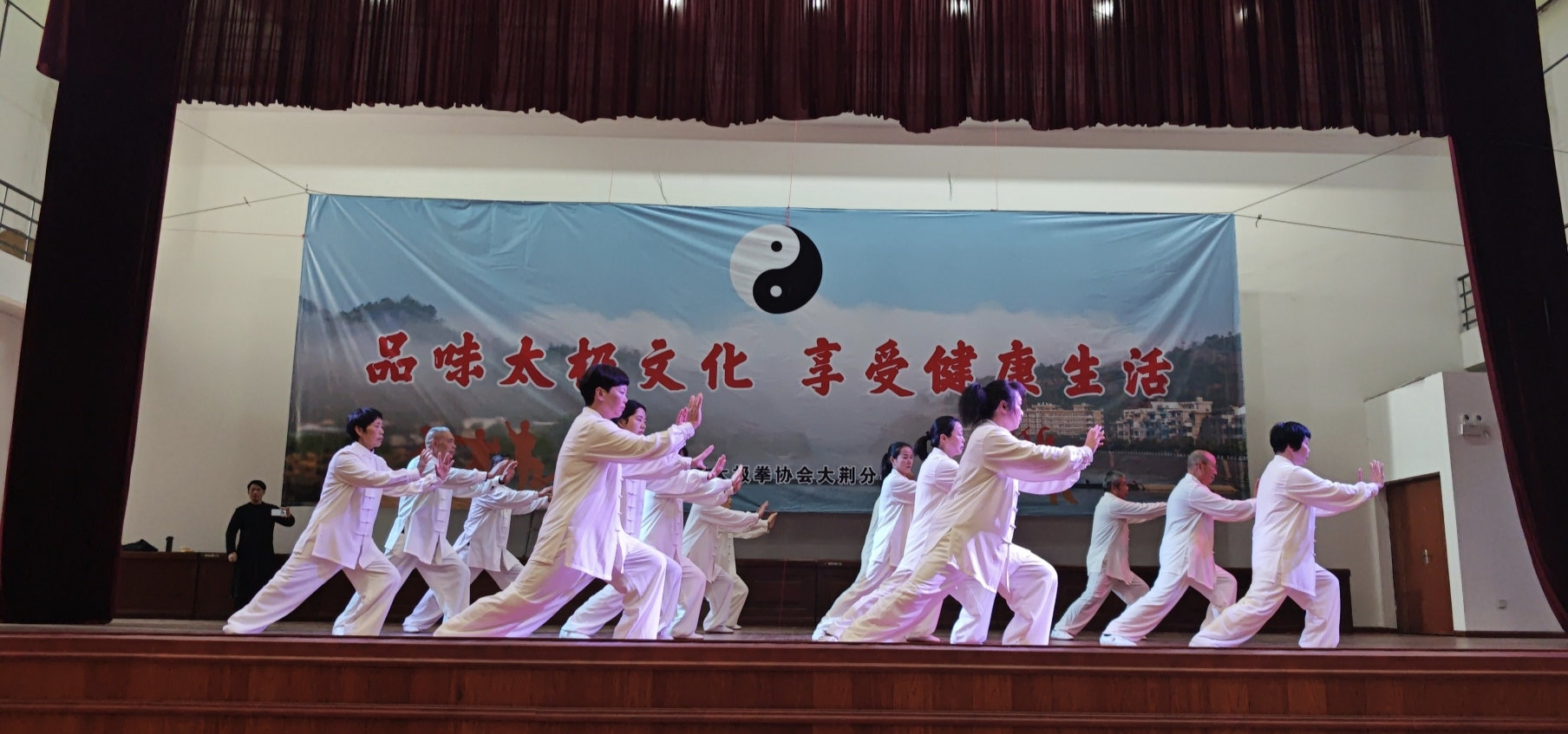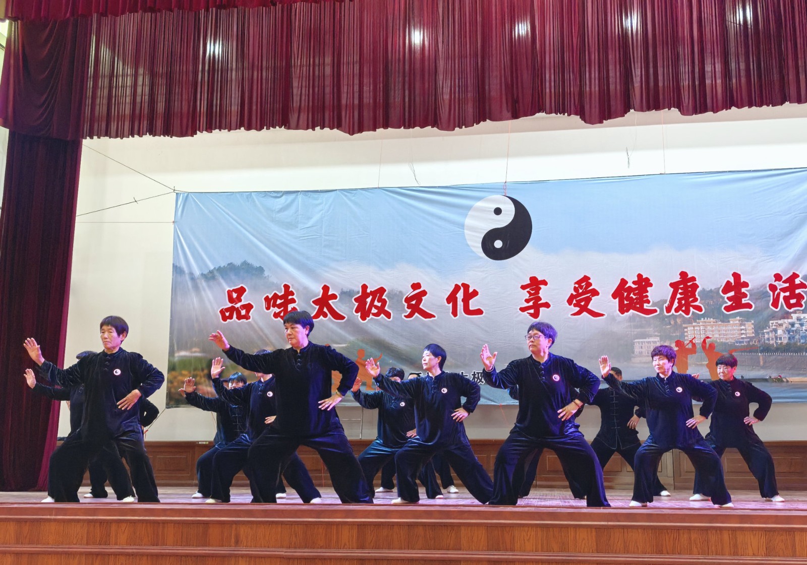 随后,年会表演活动开始,30个节目依次登场,会员们身着统一服装,精神抖擞,在悠扬的旋律中,大家一招一式刚柔相济,行云流水,无论是舒缓沉稳的24式太极拳,还是灵动飘逸的太极剑,亦或是气势如虹的太极功夫扇,内外合一动静相兼的混元太极拳,都展现出了太极运动的独特魅力与深厚底蕴,精彩表演,掌声雷动。