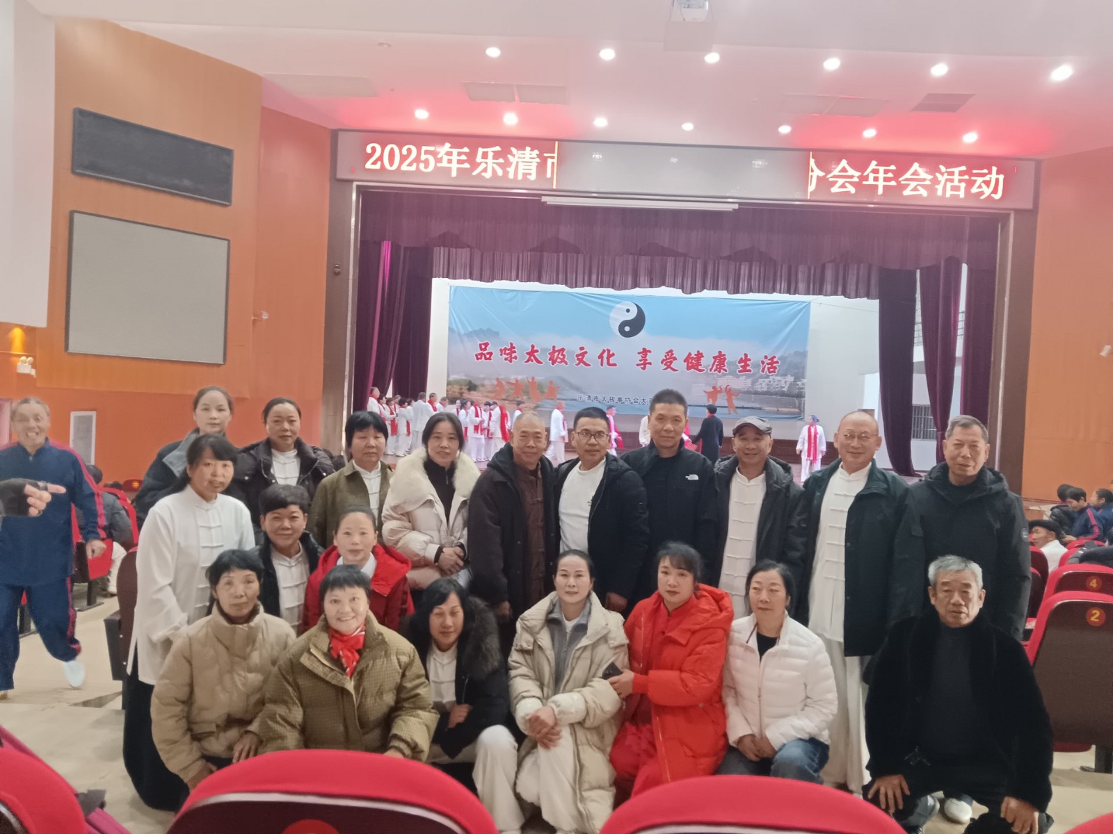 冬日暖阳融寒意,太极神韵聚知音。2025年12月28日,乐清市太极拳协会大荆分会年会在电影院隆重举行。本次活动特邀黄副镇长、陈主任参加,和220多名位会员欢聚一堂,共话太极情,同绘新蓝图。