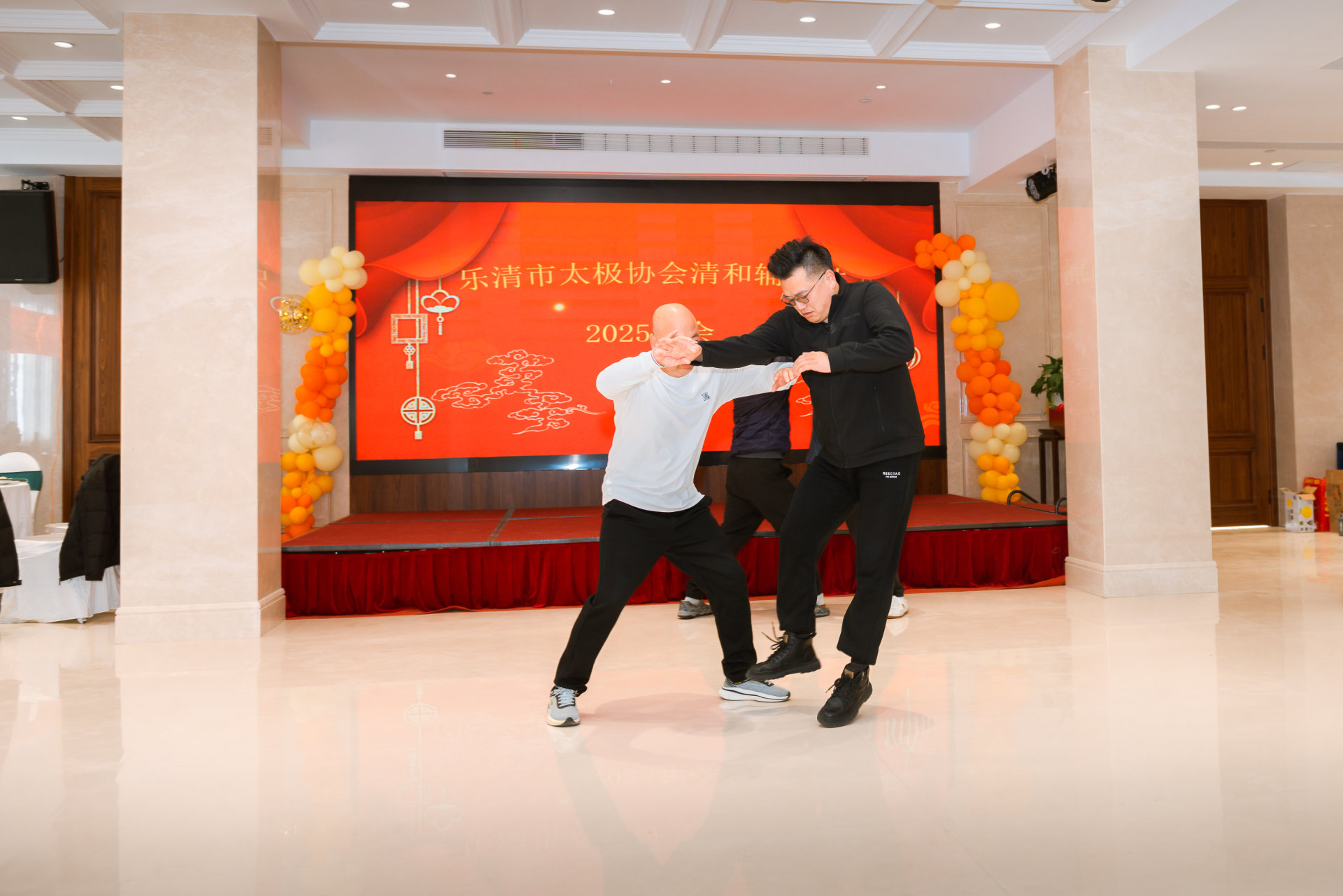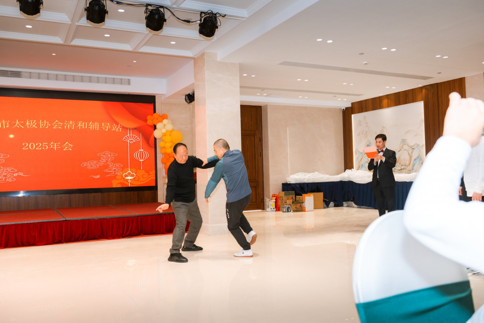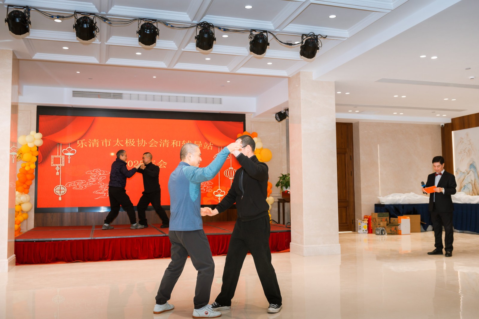 2025年12月27日,乐清市太极拳协会乐成分会清和辅导站“盛世中华·太极武韵”2025年年会顺利举办,一众领导、嘉宾与全体拳友欢聚一堂,以拳会友、以武传情,共展太极风采,共话年度成长,由陈宣定担任本次大会主持人。