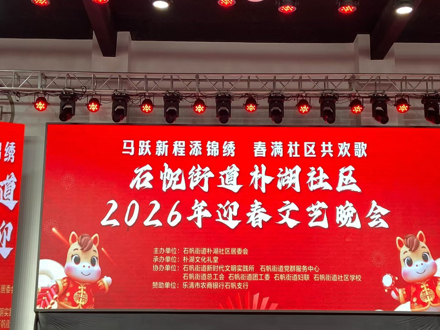 为喜迎2026马年新春,丰富居民精神文化生活,营造邻里和睦、喜庆祥和的节日氛围,石帆街道朴湖社区于2月9日举办“马跃新程添锦绣 春满社区共欢歌”迎春文艺晚会,以文艺为纽带凝聚邻里情、传递新春福,让居民在家门口感受浓浓年味与社区温度。