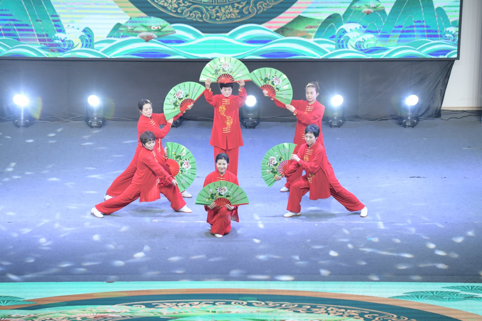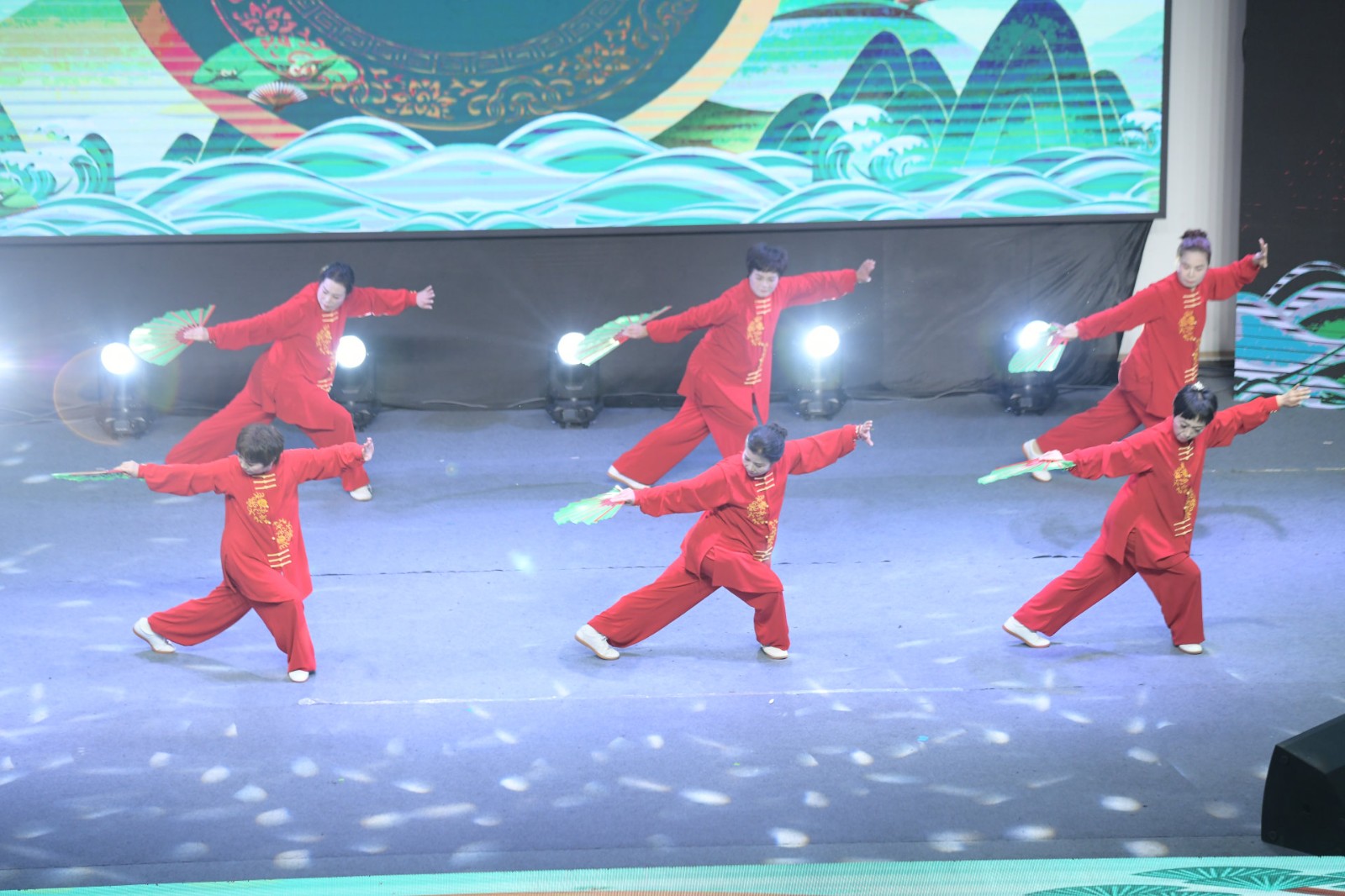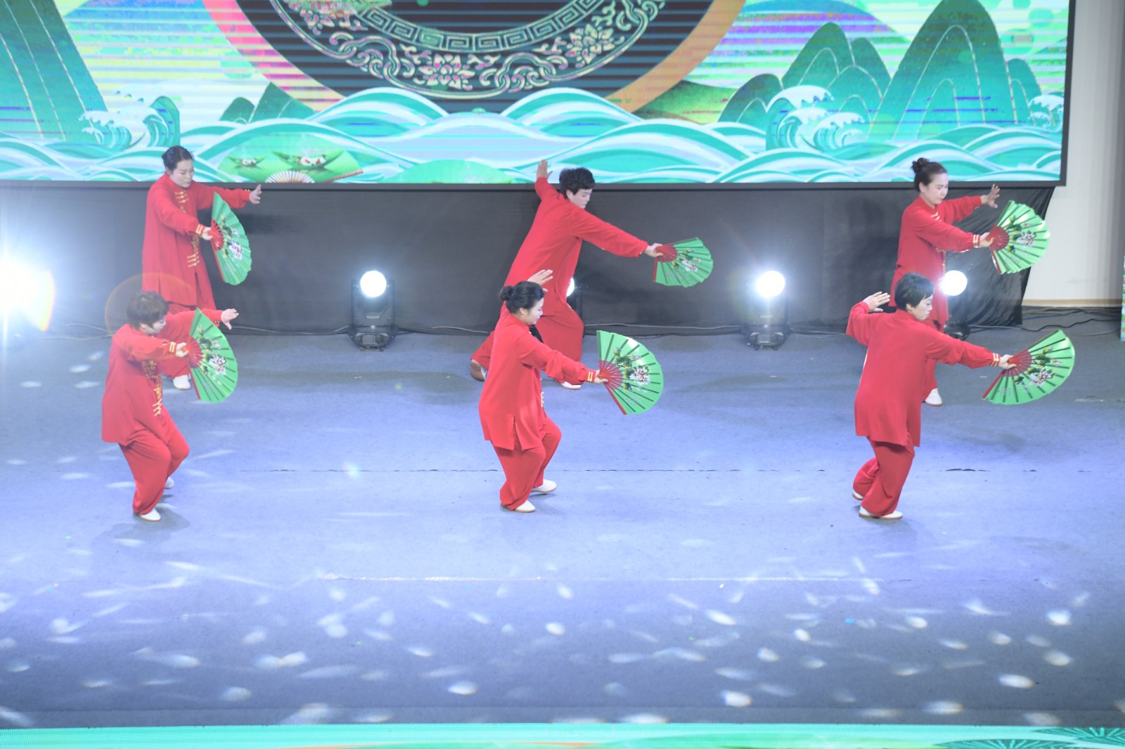 乐清市太极拳协会石帆分会受邀参加了本次晚会演出,由6位表演者为现场观众带来了国家新编28式太极扇。