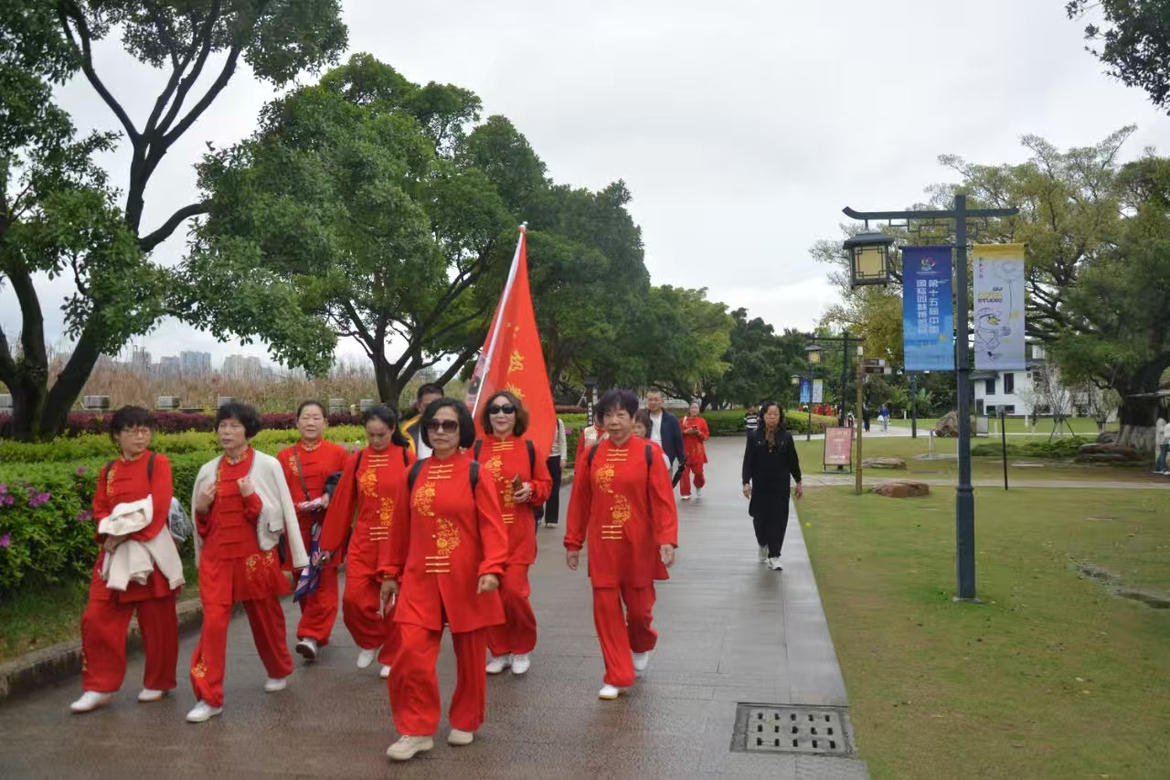 一行人漫步江心屿,赏瓯江风光、访千年古刹,于园博园览四季盛景、享自然意趣。拳友们以拳会友、畅谈交流,在山水间舒展太极身姿,尽显刚柔并济的国粹风采。